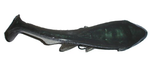 Another interesting feature on this bait is the bottom fins. The bottom fins are intentionally colored more darkly than the rest of the lure to help mask the hooks. If you look at the bottom and side pictures of the 9" lure above, you'll notice the hook really blends into the fins making it more difficult for the bass to see. And since most of us like to use stinger hooks on baits like this, the bait has a second set of fins to mask the stinger hook. It's really a pretty clever setup.
