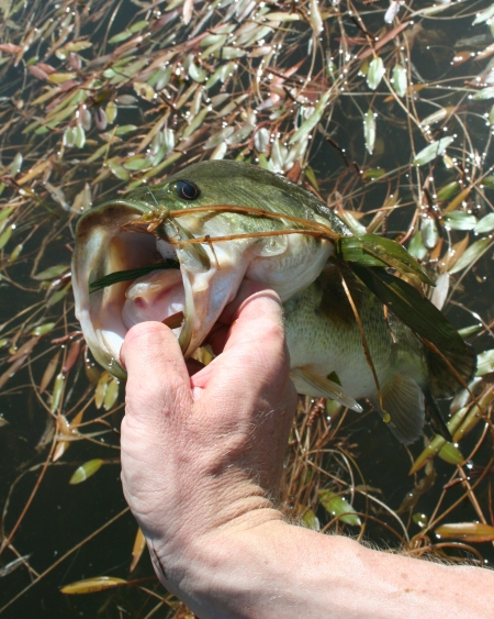 Encouraged, I continued with the frog (Bobby's Perfect) and had good success the rest of the afternoon. The next fish was a 3.9lber that rolled on it once, then ate it on the next cast. Next, a 3.8lber that again attacked the frog with reckless abandon. After those 3 nice fish the small ones moved in and I did three 2lbers almost in a row.