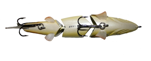 Overview/History: The River2Sea Kong series came out in late summer 2007. For some reason the name has since been changed to the Bossymarck and I’ll call it that for this review. This three-piece hardbait is available in a 6 and 5/8” and a 9” version. River2Sea measures everything in millimeters so the corresponding model names are the 168 and the 230. There’s a floating and sinking version in each size and a total of six available colors. For you math majors that’s 24 different options. The stock hooks are black nickel Daiichi’s with 2/0 on the small bait reviewed here and 4/0 on the larger model. Split rings are heavy duty style. Retail price is $28.
