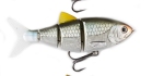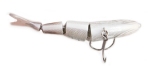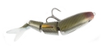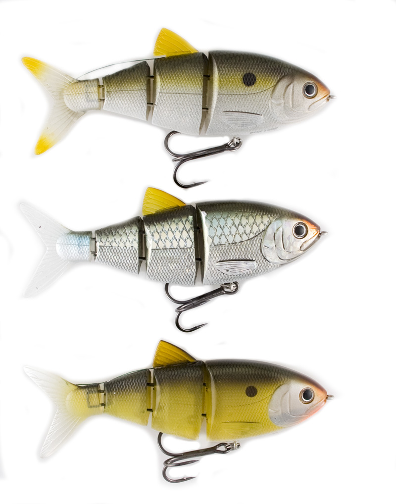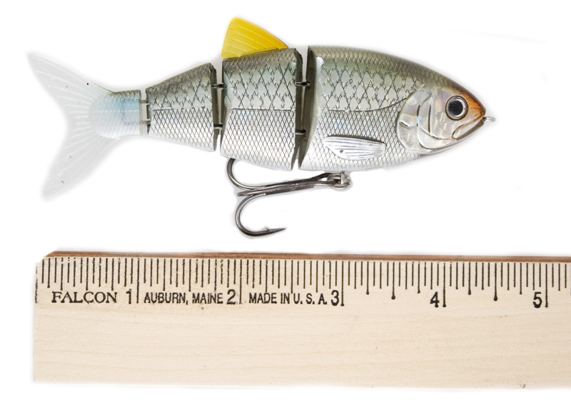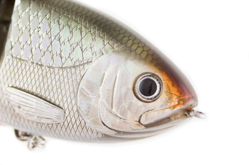 The BBZ-1 Shad debuted in early summer 2008. This 4" Shad imitator comes in six colors and three sink rates. The sink rates are described as floating, slow sink (3 inches per second) and fast sink (1 foot per second). Three of the colors are shad pattern (duh) with a blugill, blue herring, and perch thrown in for good measure. Retail price is in the neighborhood of $20. The stock hook is a number 2 Gamakatsu 2x strong in black finish. When I think about the BBZ lineup, the word that comes to mind is functionality. Fresh out of the package, these lures are ready to rock. No tuning, no modification, just tie it on and fish. I have a big pile of BBZ-1 shads and they all swim just right out of the box. Being picky I might change out the black hook for a more subtle bronze Gamakatsu round bend, but with just one hook for the bass to tug on (and potentially bend out) I'll leave the 2x on if I feel like my next cast could result in a big bite. The BBZ-1 Shad color lineup is well thought out. So many companies these days are basing their color line up on someone else's lineup - which makes it refreshing to see at least a few original thoughts here. Yes, sexy lavender shad is a testament that someone read the marketing study that tells you the word "sex" sells product, but at least the lavender overtone on the bait sets it apart from the standard sexy shad patterns. Where I get more interested is with colors like killer gill, a matte finish bluegill pattern with rust/copper overtones. Complementing the killer gill is dirty shad, a very yellow pattern that stands out as something unique in a world of sameness. Kudos to Spro for letting some ingenuity in here. I've often felt that yellow is an underutilized lure color. Think 082 Keeper Reaper and tell me that dirty shad doesn't look like a good color. If you're a regular review reader you know I'm a fan of "secondary action" - that little extra movement independent from the primary action. The BBZ-1 Shad offers this with the single thread that runs out of the back of the lure behind the dorsal fin to imitate the threadfin shad. The threadfin shad has its name for a reason! The thread is present on the shad patterns and viewable in the last photo above. My favorite detail item on the BBZ-1 shad is the color blending in the tail. Minor detail I know, but I've fished enough hybrid lures over the years to tell you without a doubt that if there is an unnatural vertical color change in a lure, fish are much less likely to bite it. I've proven this with the Castaic Softbait trout and the Rago Live Trout Hardbait repeatedly by fishing the baits at night and nailing fish on them, then trying them during the day with no luck at all. In fish, colors change hues and tones from top to bottom. They almost never change from head to tail. This is especially true of fresh water fishes. Yes I've caught male sheepshead in the ocean before, but we're fishing for bass here and we aren't using wrasses for bait. Spro got the transition from hard plastic to soft plastic just right on this lure. When selecting your rod and reel setup for the BBZ-1 shad, think in terms of medium to heavy action crankbait gear. 10 to 20lb is all within the realm of possibilities. If I was picking one test, I would go 14lb. There should be no need to replace the split ring or use a snap. On most lipless hard baits a snap actually impedes the action. Just tie direct and go for it. With every review I write I take time to fish with the lures and also to listen carefully for feedback. Although the fishing world is pretty tight lipped these days, a strong trailing indicator of lure success is eBay. Jump on there right now and you'll likely find custom painted BBZ-1 shad with large numbers of bidders and some pretty outrageous price tags. This tells me the lure is working. For me, not so much, but for other people somewhere, things are happening. If I could politely offer one con, it would be that while the lure is shaped like a shad and painted like a shad, the motion is not much like a shad. I'm not saying the action is a bad action; it has a fishy look to it. But if you toss this thing in to busting fish that are on 4 inch threadfin shad, the lure just does not look like the real thing. All things considered this is a solid product from Spro and clearly people are using it and paying big bucks for custom painted models. Of the lipless shad swimbaits avaialbe, the Spro and the Uncle Josh are my favorites so far.