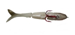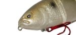 The Platinum Gizzard Shad showed up on the scene in early 2006. This 6" bait is available in two sink rates (fast and slow) and two colors (blue shad and green shad). The fast sink model weighs 1.5oz and slow sinker is just a little lighter. The lures come stock with the Castaic Treble Claw hook in red, and retail for around $14.