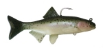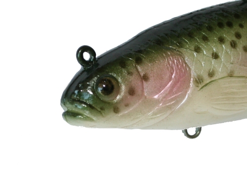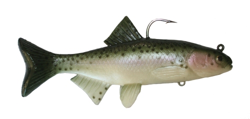 The Baitsmith swimbait became widely available in early 2007. This 6" bait weighs a hair under 2 ounces and comes in six colors. The stock hook is a 5/0 Mustad Ultrapoint, and there is a wire loop on the belly to add a stinger hook. Each bait is hand painted, and the eyes are painted on (not glued). The Baitsmith sinks slowly, and planes up on the retrieve. I have not cut the bait in half to check, but it feels like a combination of foam and lead is used to balance the bait. These lures retail for around $28. Because the Baitsmith is in many ways a Huddleston clone, it would be impossible to write this review without drawing comparisons. The first thing worth noting about the Baitsmith is that it is available in a 6" size. Many anglers were anxious for a smaller Huddleston to become available, and by being first to market with the smaller size, Baitsmith was able to capture a lot of sales. So my first pro for this bait is the simple fact that it's a Huddleston-like lure in a smaller size. My expectation when I see a clone lure is that the quality will be poor. This is not true with the Baitsmith. These lures are well constructed, with clean molding and precise detail. I have not seen any Baitsmiths that swam crooked out of the package. The hardware is affixed firmly inside the lure, and the fact that Baitsmith took the time to put floatation inside the lure shows their commitment to quality. If you have not realized it already, putting floatation inside a swimbait is the key to making it swim true at all speeds. I don't know of any lures that did this before the Huddleston, but I do have boxes full of swimbaits that have only lead in the harness that swim just a little off. Kudos to Baitsmith for taking the time to make these baits right. I believe we will see many more lures with floatation in them in the near future. It's difficult to do from a manufacturing standpoint, but it's the key to a true swim. The colors on the Baitsmith are excellent, and also serve to differentiate the lure from the Huddleston. Chartreuse shad has been a popular pattern, and the hitch minnow patterns are geared toward Clear Lake, where the Baitsmith has been mopping up tournament money at a rapid rate this year. Hitch are chameleons, with the ability to change color and hue to match water clarity and sunlight conditions. With three hitch patterns available in this lure, you can match conditions on the water. The action of the Baitsmith is about what you would expect, however it does have a nice vibration to it that is worth dissecting. I have always believed that bass are tricked by the Huddleston in part because the anal fin "swims" as the tail kicks. This is what I refer to as secondary action. Secondary action makes lures look alive. The Baitsmith gets secondary action in the pelvic fins, anal fin, and dorsal fin. The composition of the plastic is stiff enough that the lure looks twitchy in the water as you speed it up. This additional quiver gives the lure a fleeting, harried look as it moves. It's something like the vibration thrown by a chatterbait; not as dramatic as that, but enough to draw fish from a distance. I like the thin profile of the Baitsmith and this lure has hookup ratio written all over it. This lure is a tournament fishing weapon plain and simple. You can conceal your trap hook between the pelvic fins, even going so far as to impale the hook points in to the fin for more weedless action if so desired. The lure is small enough that if you are fishing over the top of grass, you can get away without any trap hook at all. Catching three and four pound bass on this lure should be no problem. With solid construction comes longevity. I would expect to get 10 or more fish per bait on this lure. It uses a heavy, injection type plastic that can pull and stretch without tearing. Your dollar per fish value with the Baitsmith should be excellent. The eyes on the Baitsmith look OK, but they do not reflect the light like a real fish's eye does. I'd like to see a brighter metallic background color under the black pupil of the eye. The dingy gold used on the baits now just does not look right to me. For the trout imitating anglers, the Baitsmith only offers one color option. This is a whitish, pale pink trout pattern with a sparse dot pattern. I don't see trout in real life that look like this. A juvenile 6" trout is going to have more distinct parr marks, more dark green/blue on the back, and a heavy spotting pattern. In Northern California there are lakes like Shasta where trout reproduce naturally in the rivers, and small trout are common in the lakes. There are also occasions where the CA trout hatcheries will be forced to stock small, 6-8", trout because of problems at the hatcheries. These trout are dark in coloration, with dirty grey bellies. A dark, well spotted pattern could enhance the color lineup for Baitsmith. My biggest complaint with the lure is the sink rate. These baits take forever to sink, and the second you turn the handle they start shooting toward the surface. I like fishing slow, but I don't like wasting a lot of time on each cast waiting for the lure to get to the proper depth. This problem is exacerbated when you use heavy line like 25lb test. The heavier line causes the Baitsmith to come to the surface even faster. A model with a ROF12 or ROF16 equivalent sink rate could improve the Baitsmith offering a great deal. Overall, this lure is fast becoming a proven tournament performer. It has been winning or contributing to most of the recent Pro/Am victories at Clear Lake. With the Baitsmith you get Huddleston like performance, at a reasonable price, in a smaller size, with quality color options. We'll be hearing a lot more about this one in the future.