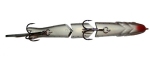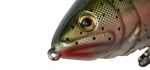 However if you are feel that you're in the category of normal bass fisherman checking out swimbaits, be aware that this is not a lure to do a little shore fishing with at the local trout plant lake. This is a bait for boat fishing in big, clear, deep water. Make sure you put a rod with backbone and 25 mono behind this bait while you are out there. One of the big dilemmas as a product reviewer is that I almost always get baits out of batch number one. With the Tail Wagger there were several obvious defects that very well may have been worked out by now. None the less my bait needed some help out of the package. The first issue was with the pin holding the tail on. My tail fell off before I even made a cast with the lure. This was easily fixed with a drop of superglue, and I would recommend the same (super glue gel is a great product). The next thing I noticed after fishing the lure was that the hinges began rusting immediately after the first trip. Now I like some sqeak to my lure joints, but I don't like to see rust stains running down the inside of the hinges. Again, these issues may be corrected now, but the bait I have is a rusty little dude sitting here at my desk as I write this. My last observation was with the eyes. They look great but I flicked both of them out with my fingernail. I would like to have seen some Devcon 2 or Aristocrat style epoxy covering the eyes to ensure they do not come out. Overall my feeling about the Tail Wagger is that it's a legit lure. I'm pleased with the true-swimming action and the solid paint jobs. I like the Owner hooks and the taxiermy eyes, and I feel like with a little cosmetic and structural re-work this is a bait worth putting in your box for $50.
