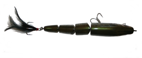 I mention the tournament thing because the hook setup is just right for short striking fish and for putting the hooks to the smaller bites that often matter in tournament situations. You might also consider other tails for the lure, for example removing the rear hook and gluing on a Triple Trout tail – then replacing the hook could give a unique action. There’s room for experimentation here.