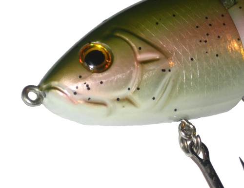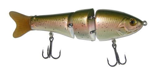 awesome color schemes, not SO detailed that the price kicks up $20 because of paint, but the Ayu, Hitch, and Trout are all good colors that will imitate a variety of baitfish. Very choppy action, with the head moving widely, the tail kicks behind it much harder than a triple trout. this bait casts very nicely on #20 into a stiff wind. the plastic tail on this bait is made of the stretchy plastic like the strike king 3X baits, very durable. price/availability- $50 and readily available at tacklewarehouse.com